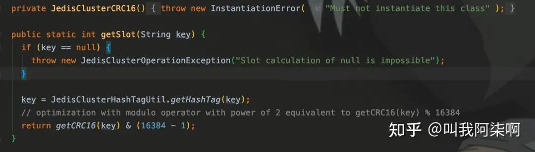 JedisClustr每次在执行set、get等操作前,都会通过JedisClusterCRC16 的getSlot() ,通过计算出key所在的slot。