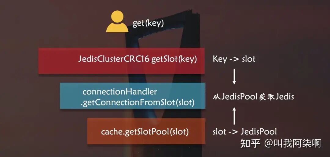 所以JedisCluster就拿到了每个slot与redis的关系与JedisPool,接下来JedisCluster再知道哪个key应该放在哪个slot上,就能直接获取对应slot所在redis的Jedis连接,将key放在redis中。