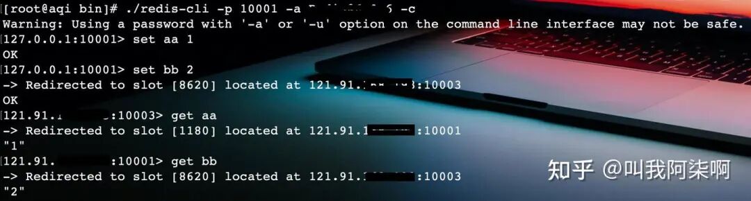 使用redis-cli set两个key的数据。在cluster模式下,一定要加-c,否则就不会重定向到key所在slot的节点上,现在不懂slot无妨,因为接下来我会讲slot。