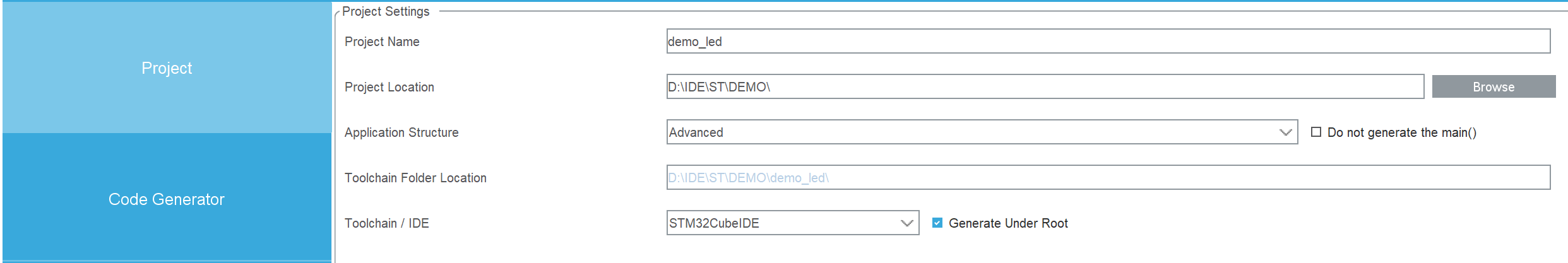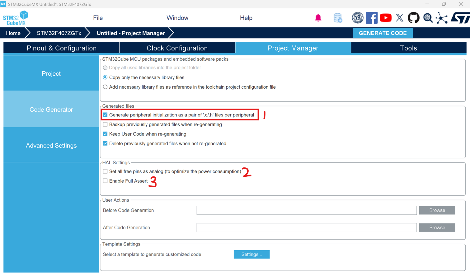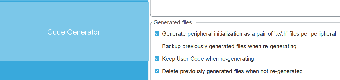 - Code Generator 页面:设置生成 C 语言代码的一些选项。