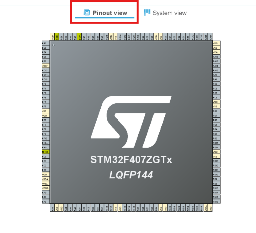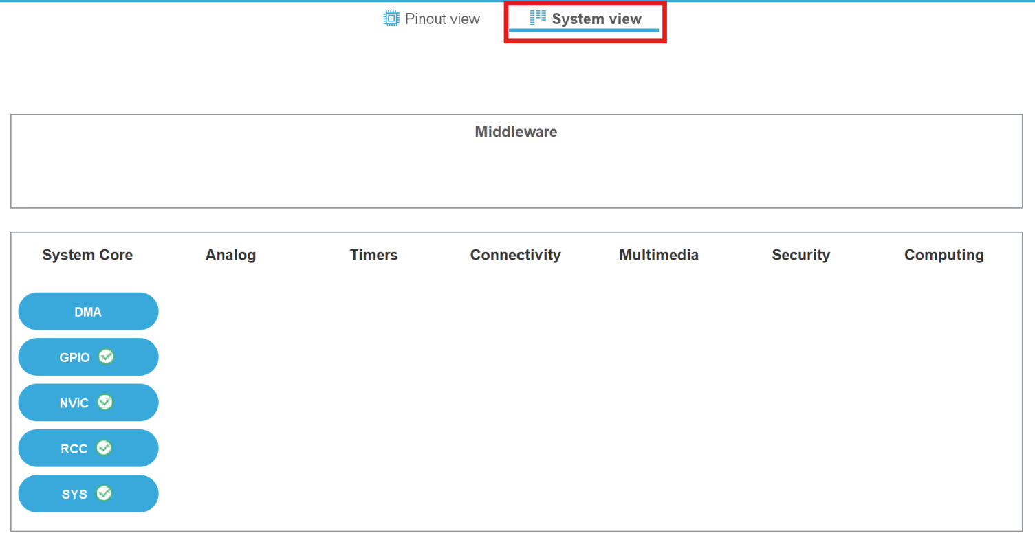 - 系统视图:显示 MCU 已经设置的各种组件。