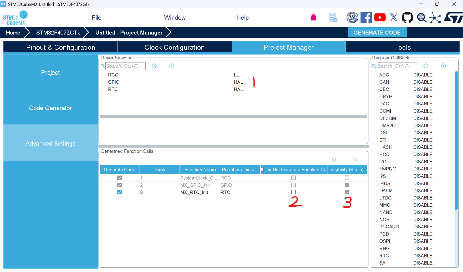 - 勾选此项,在main()函数的外设初始化部分不会调用这个函数,但是函数的完整代码还是会生成的,如何调用由编程者自己决定。