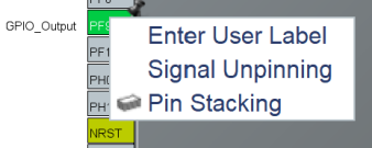 将 PF9 引脚设置好功能后,在引脚上单击鼠标右键,会调出一个快捷菜单。