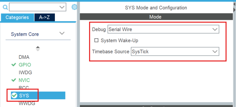 组件 SYS 设置为串行调试接口