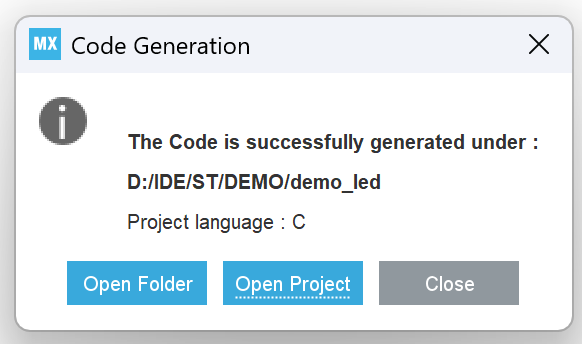 - 选择导出的 C 语言程序的工具链或 IDE 软件。
