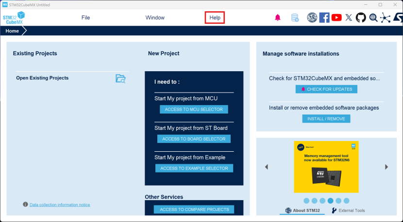 - 菜单项:Help --> Manage embedded software packages