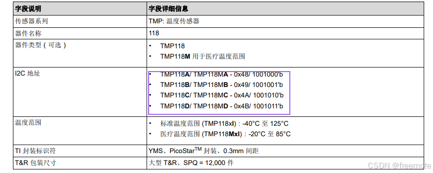 TMP118,不同的后缀,地址不同,本次测试的是TMP118B,所以I2C地址为0x49。