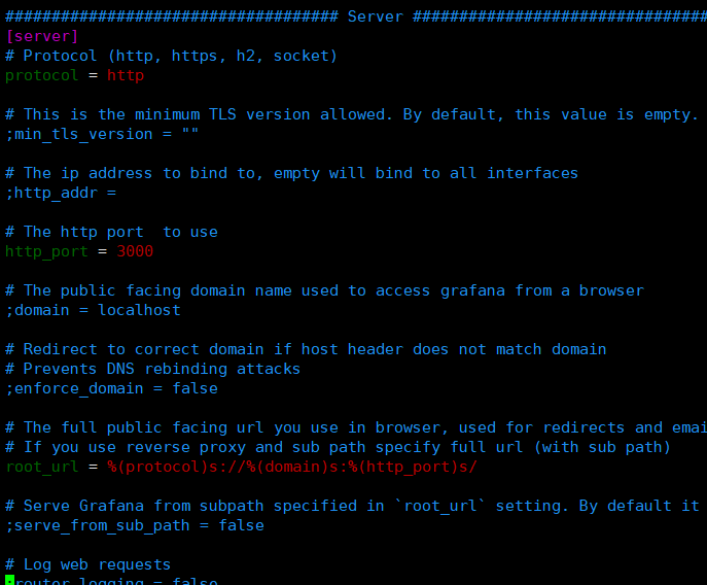 [root@monitor ~]# yum install grafana-enterprise-11.1.2-1.x86_64.rpm 5.4.2 修改配置文件 vim /etc/grafana/grafana.ini
