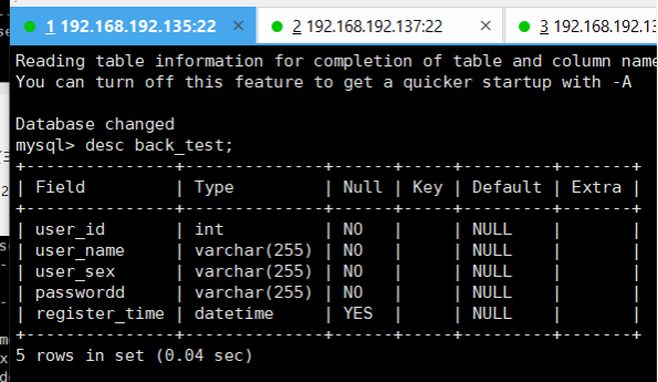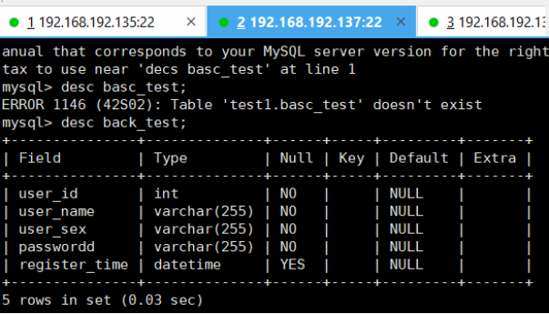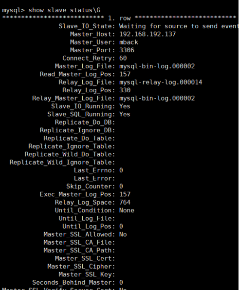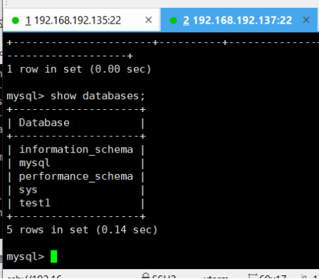 此时master1(主)--master2(从)构建完毕 4.3.2 master 2执行 创建表