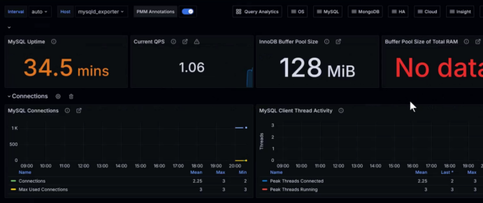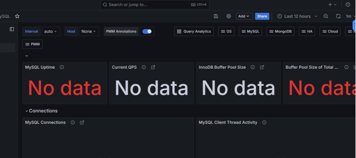 | 问题1: 在"部署Grafana"的过程中,修改并配置好文件之后,在浏览器中输入192.168.192.136:3000并监控mysql时不能监测到具体数据,显示"NO DATA"。