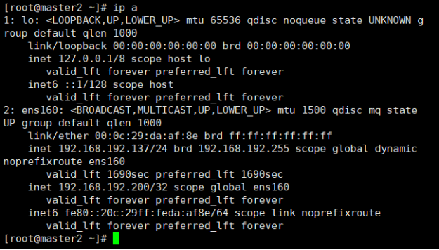 [root@master1 ~]# chmod +x /etc/keepalived/chk_mysql.sh # 设置脚本执行权限 [root@master1 ~]# systemctl start keepalived [root@master1 ~]# systemctl status keepalived Master2同上操作 4.5 局部测试 在master1中停用mysql 查看VIP是否漂移