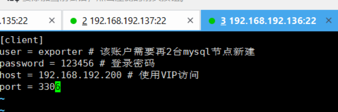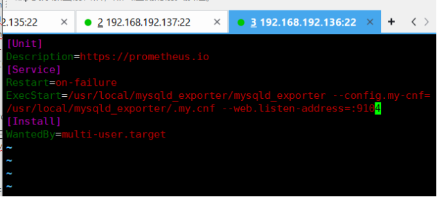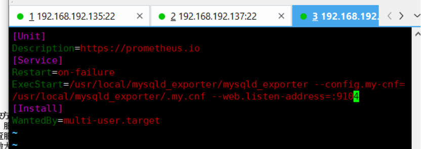 5.2.2 配置文件 [root@monitor mysqld_exporter]# vim .my.cnf # 注意为隐藏文件