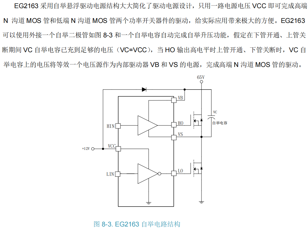 - 采用先进的自举电路设计,内置自举二极管,仅需外部电容即可为三个高压侧驱动提供悬浮电源,大大简化系统设计。