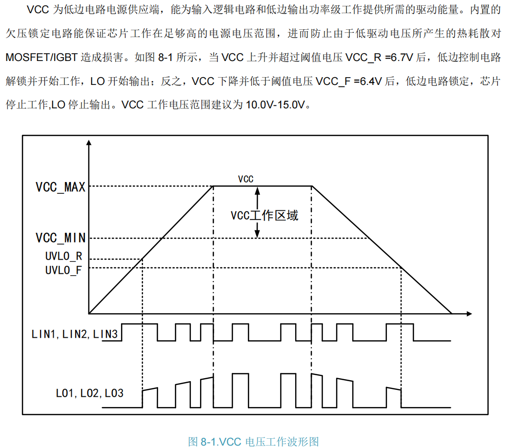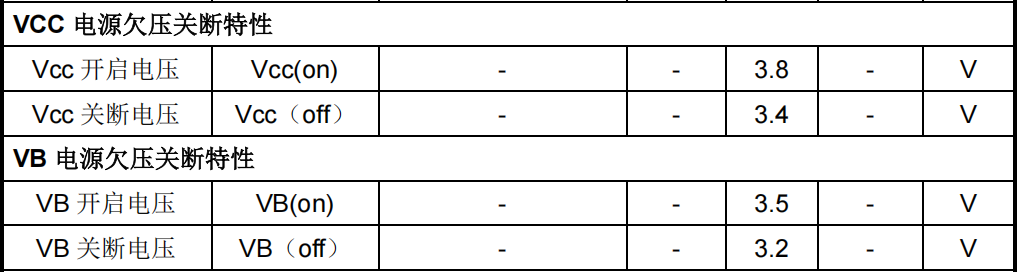 - 双重欠压保护:监测VCC和VB电源状态