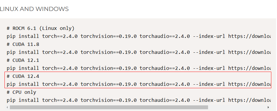 # 安装PyTorch,我的环境中安装有CUDA 12.4