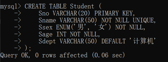 Sno VARCHAR(20) PRIMARY KEY, -- 学号,主键