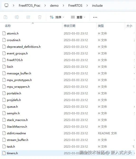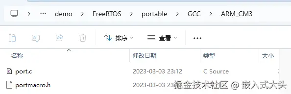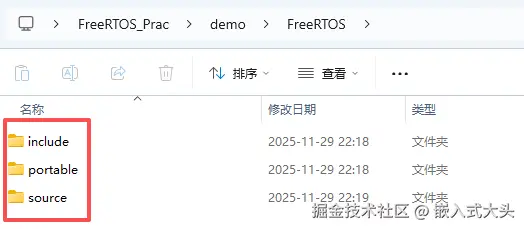 在项目根目录下新建FreeRTOS文件夹,复制源码/Source/include文件夹到FreeRTOS文件夹下,FreeRTOS文件夹下新建source文件夹和portable文件夹,复制源码Source文件夹下的7个.c文件到FreeRTOS/source文件夹,把源码/portable/MemMang文件夹复制到FreeRTOS/portable文件夹,只保留heap_4.c文件,把源码/Source/portable/GCC文件夹复制到FreeRTOS/portable文件夹,只保留ARM_CM3文件夹,把源码/Demo/CORTEX_STM32F103_Primer_GCC下的FreeRTOSConfig.h文件复制到项目/Core/Inc文件夹下