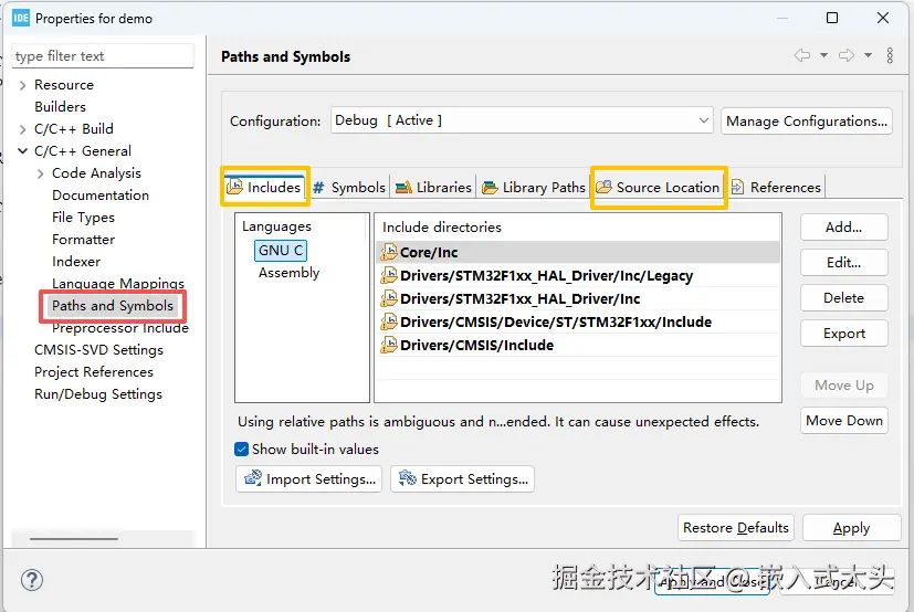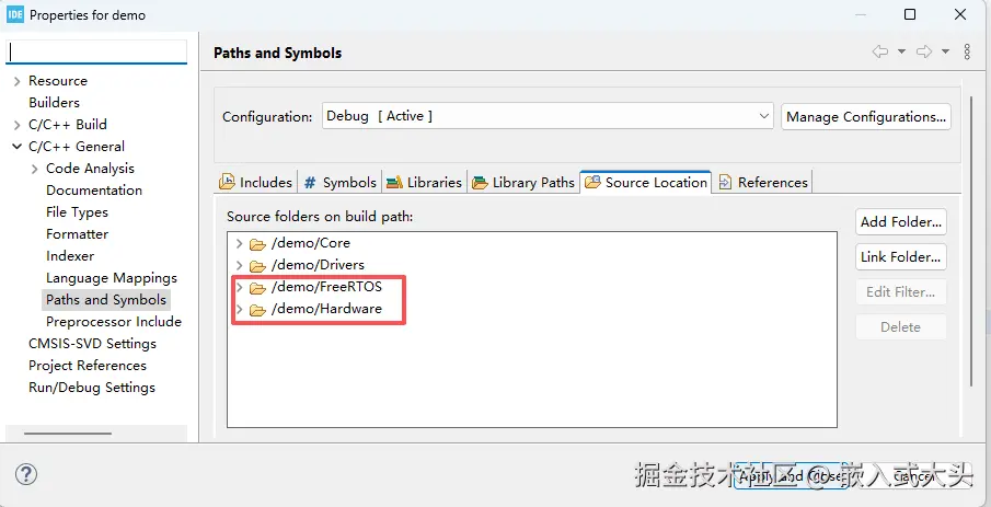 - 把FreeRTOS文件夹和Hardware文件夹添加到Source Location