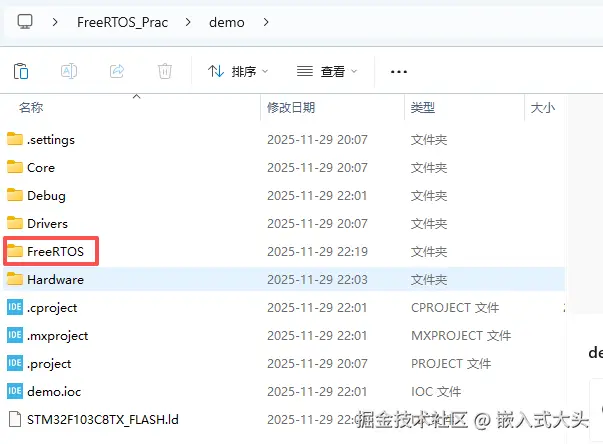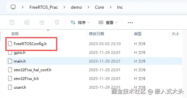 #define configSUPPORT_DYNAMIC_ALLOCATION - 在Core/Inc下新建FreeRTOS_demo.h,在Core/src下新建FreeRTOS_demo.c