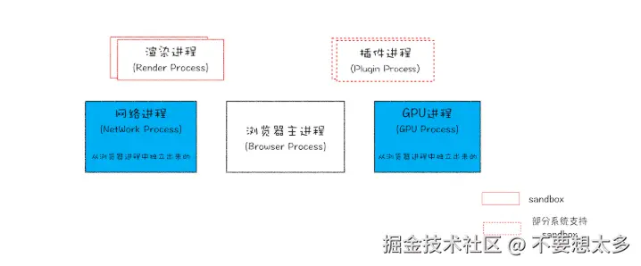 页面的渲染需要多进程之间相互搭配,重点在于浏览器进程、渲染进程、网络进程、GPU进程之间的配合