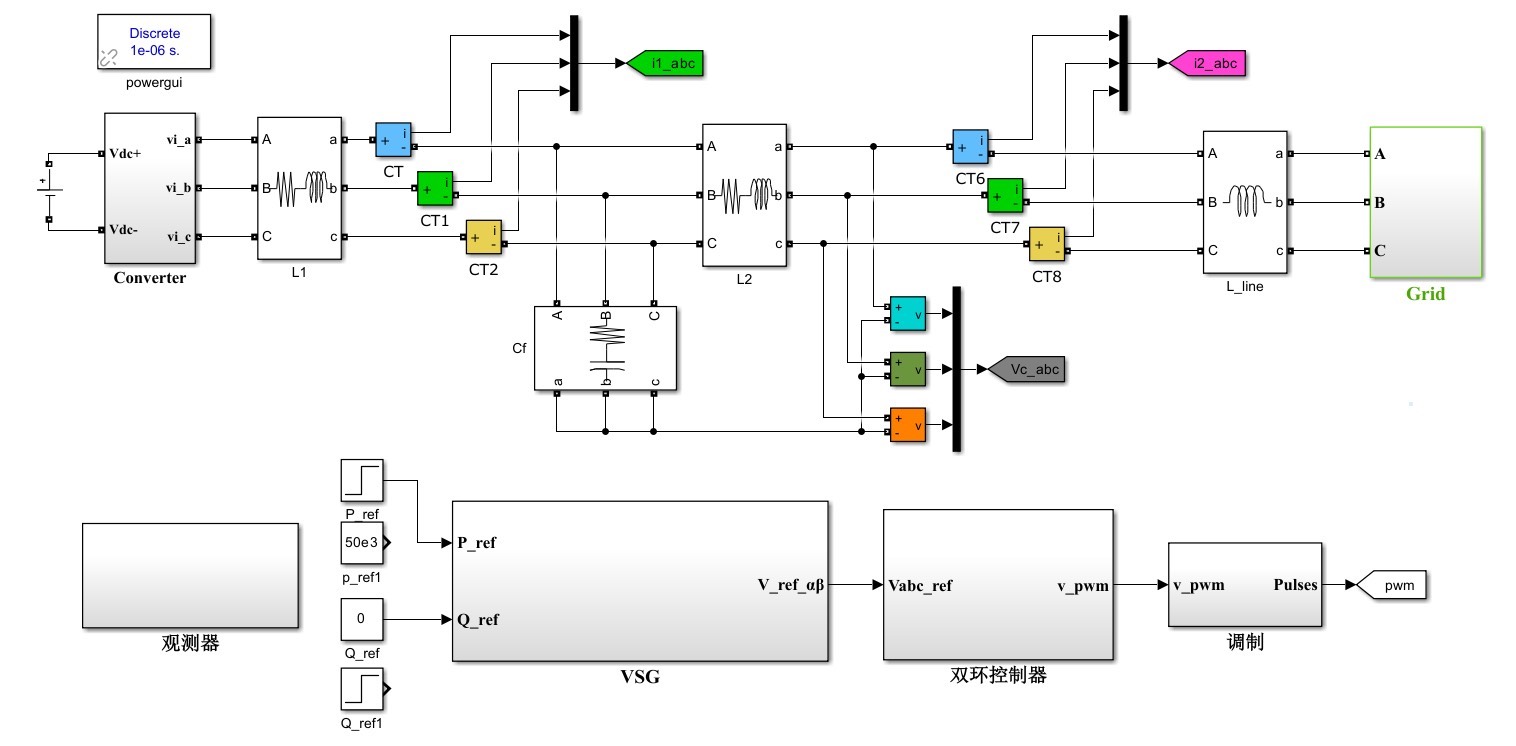 构网型变流器玩得溜的老铁们都知道,虚拟同步机(VSG)这玩意儿现在火得不行。今天咱们直接上硬菜------静止坐标系下的三相VSG电压控制。别被坐标系绕晕了,其实静止坐标系搞控制有天然优势,省了坐标变换的计算开销,特别适合实时性要求高的场景。
