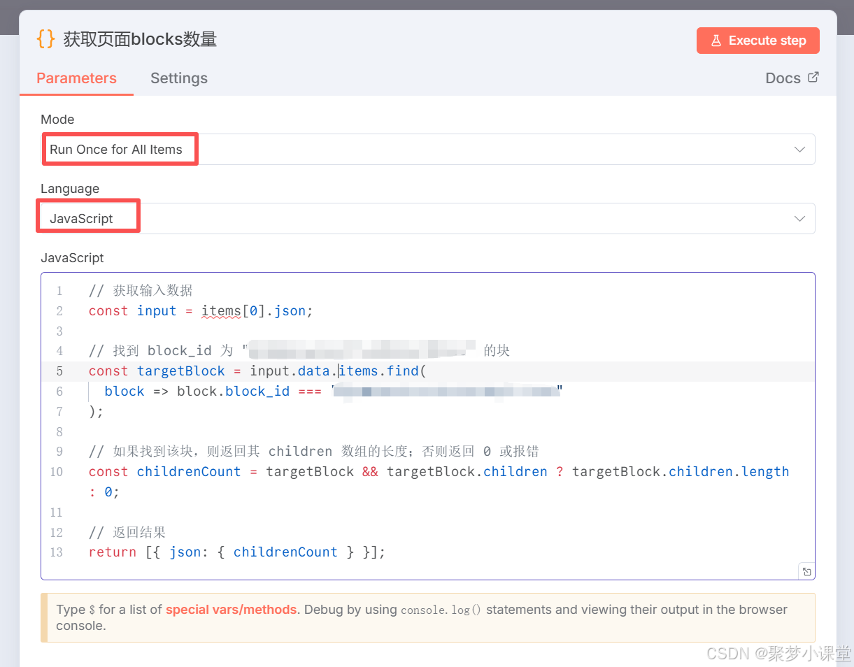 打码的部分写上一步获取的文档id即可,因为要全部清除,而所有的文档内blocks其实挂在文档下边,所以找到这个根节点然后全清掉即可。