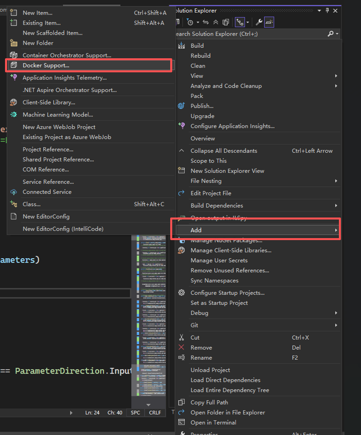 如果项目之前没有初始化Dockerfile的话,需要手动在主项目下面新建一个Docker Support。