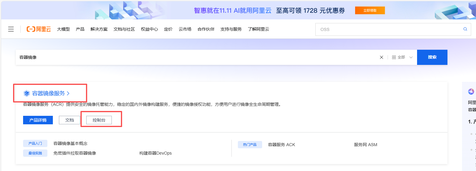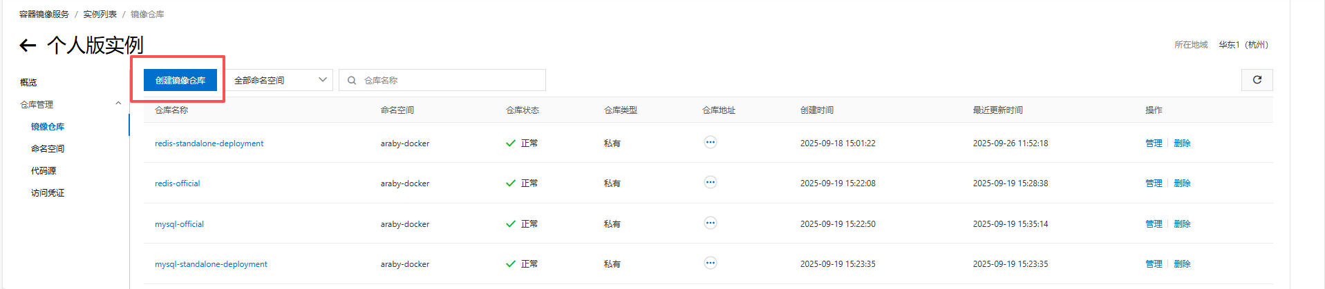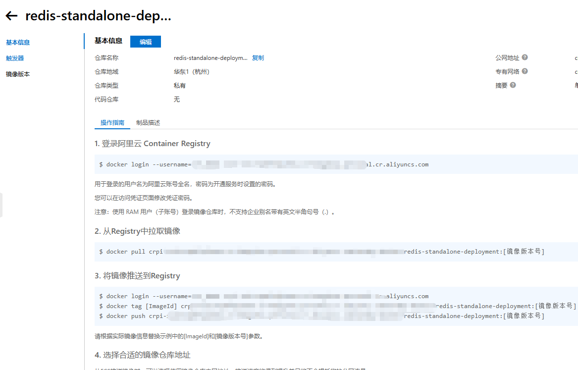 点击镜像仓库的管理,阿里云给我们提供了操作语句,包括上传和拉取镜像。