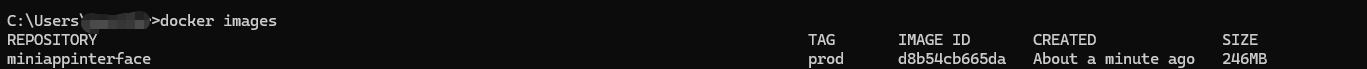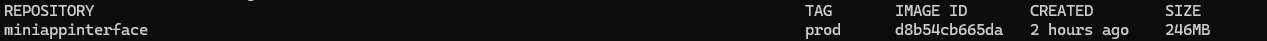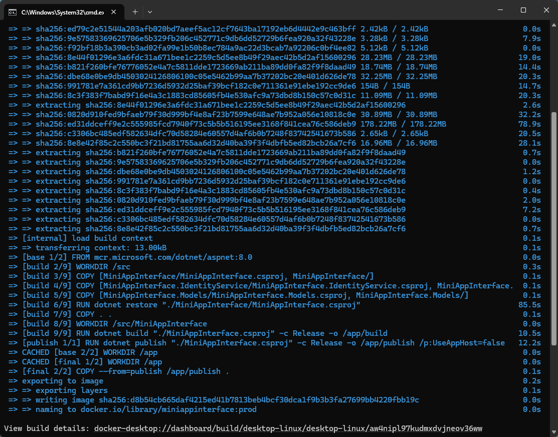 docker build -t miniappinterface:prod --build-arg BUILD_CONFIGURATION=Release -f ./MiniAppInterface/Dockerfile .