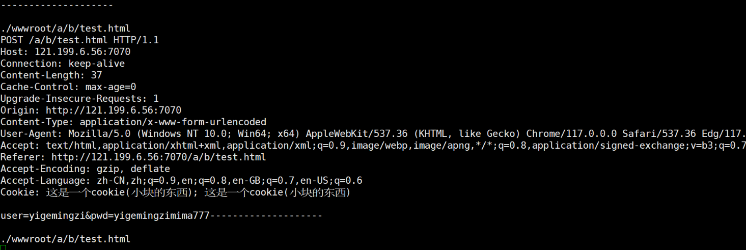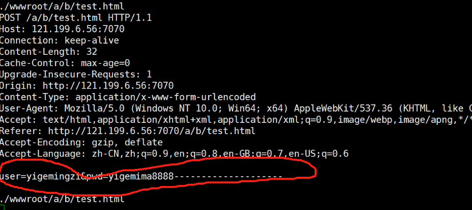 - 请求正文: 如上图最下面的黑色框中所示,包含请求的正文,如username用户名,passwd密码等,同样每个正文后面必须以\r\n来结束。