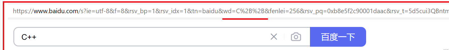 看到wd=C%2B%2B,其中wd表示关键字,=号后面的内容就是encode后的结果。