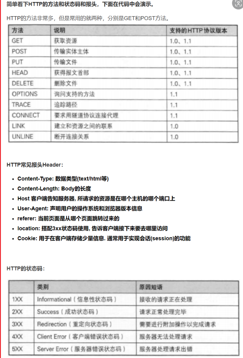 简单看下 HTTP的方法和状态码和报头,下面在代码中会演示。