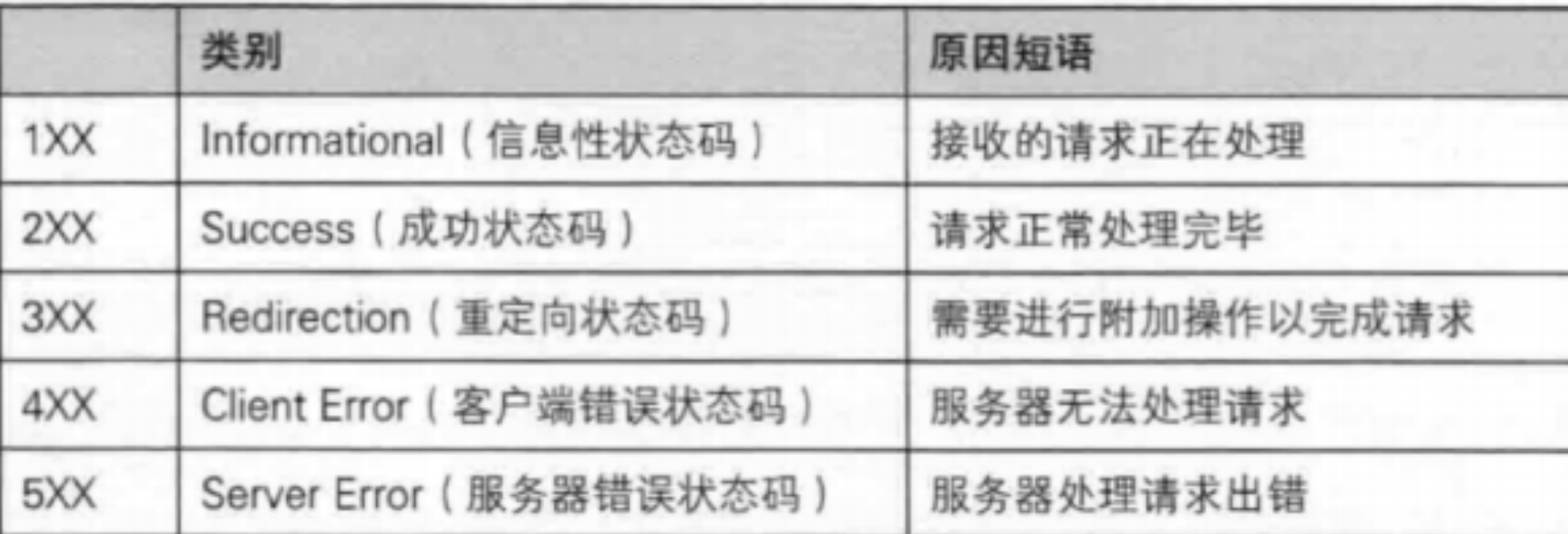 | 1XX | informa(信息状态码) | 接收的请求正在处理 |