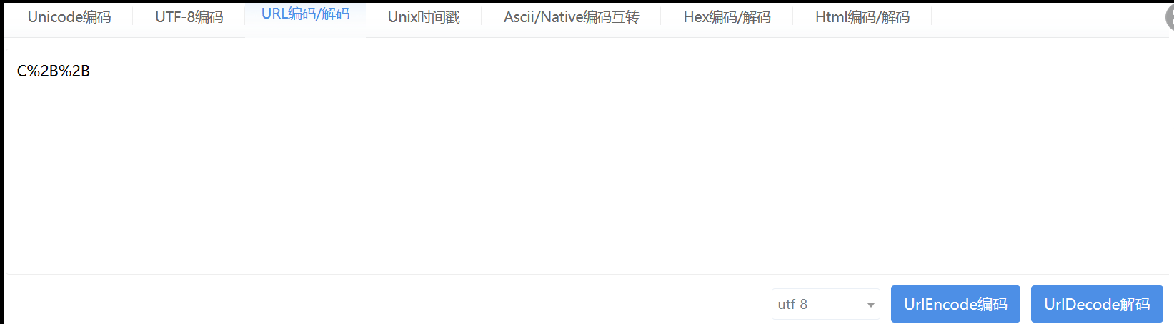 如上图,将字符C++进行urlencode后的结果是C%2B%2B,同样也可以进行urldecode进行解码。