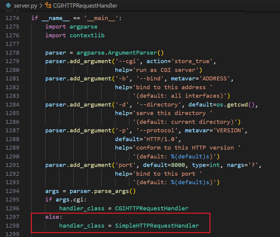 OK,http.server 整体提供的服务如上,并不算复杂,可以看到,并没有太多关于动态的内容,而命令 python -m http.server 默认使用的是 SimpleHTTPRequestHandler,其核心是提供文件等静态服务 ,这一点可以从最下方的 __main__ 实现看到