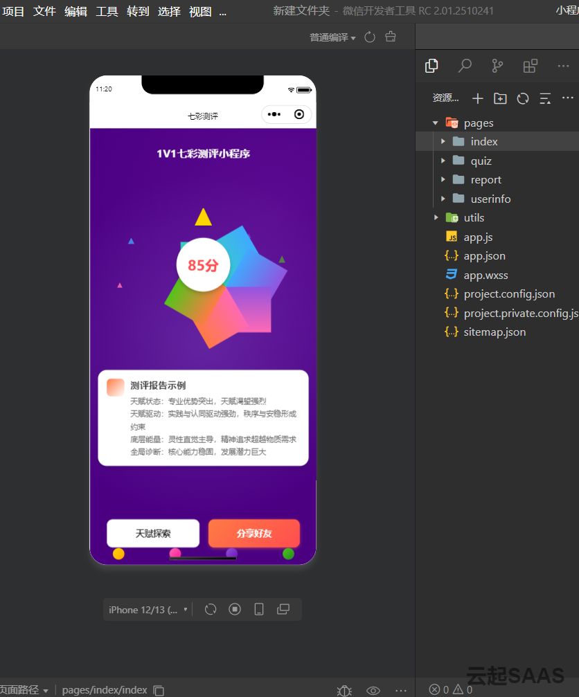 七彩测评小程序是一个基于微信小程序平台开发的专业天赋测评工具,采用卡通活泼的设计风格,为用户提供完整的天赋测评体验。