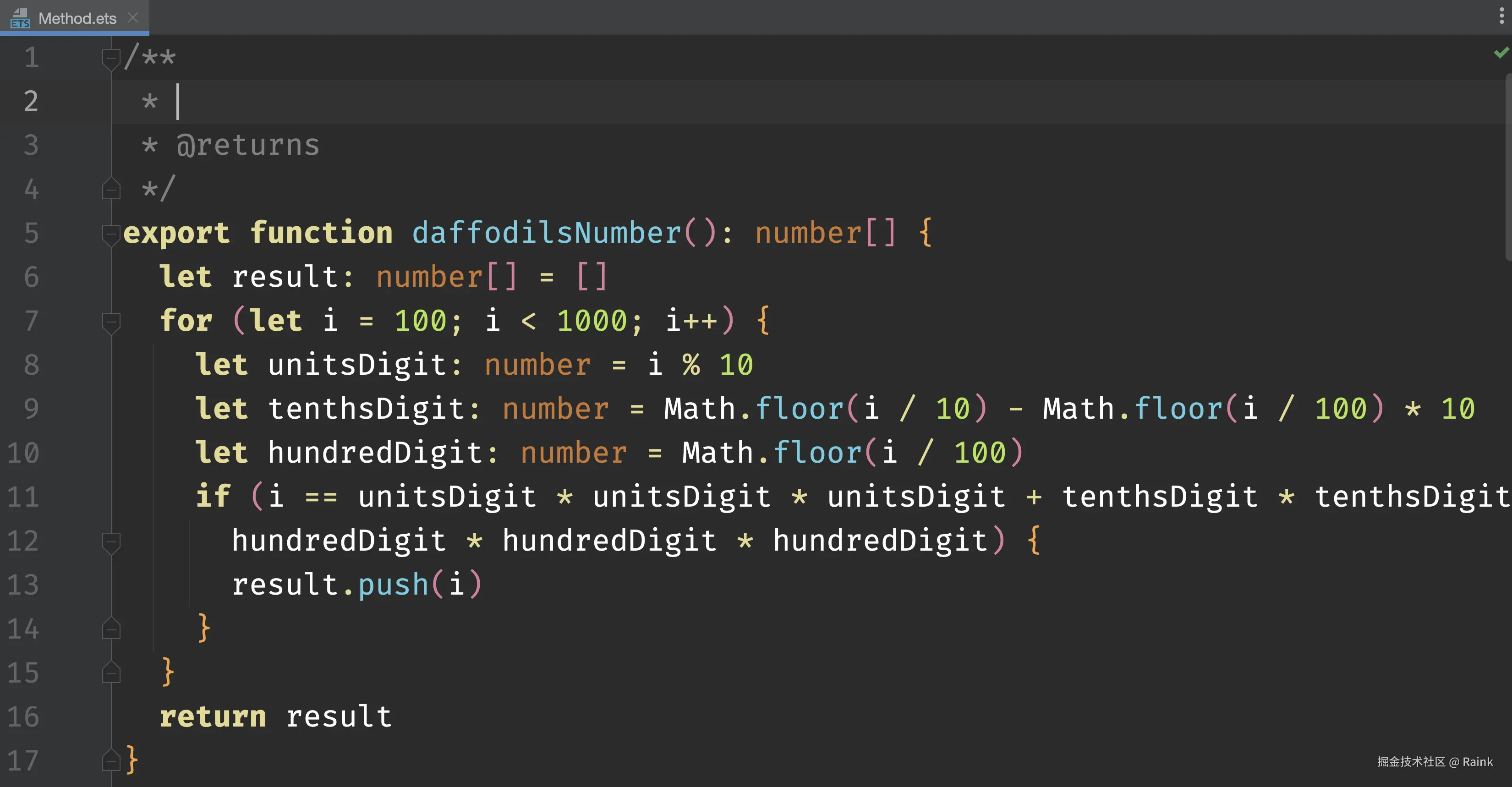 DevEco Studio支持在函数定义处,快速生成对应的注释。在函数定义的代码块前,输入 "/"+回车键**,快速生成注释信息。如图14所示。
