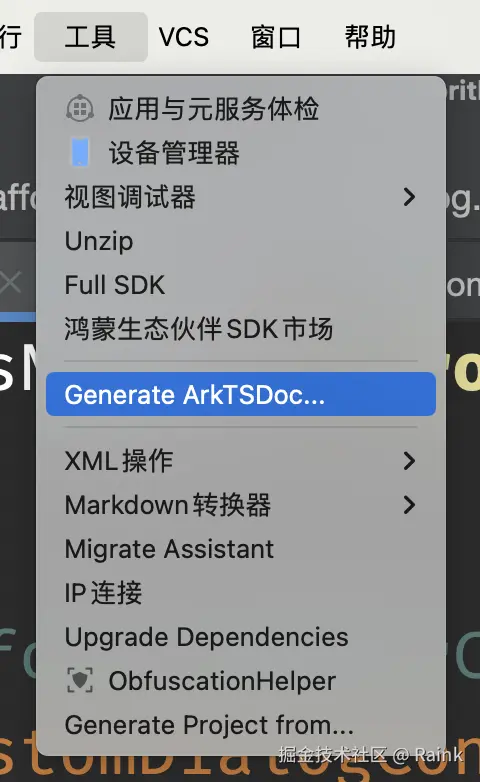 - 在菜单栏选择Tools > Generate ArkTSDoc... 进入ArkTSDoc生成界面。如图20所示。