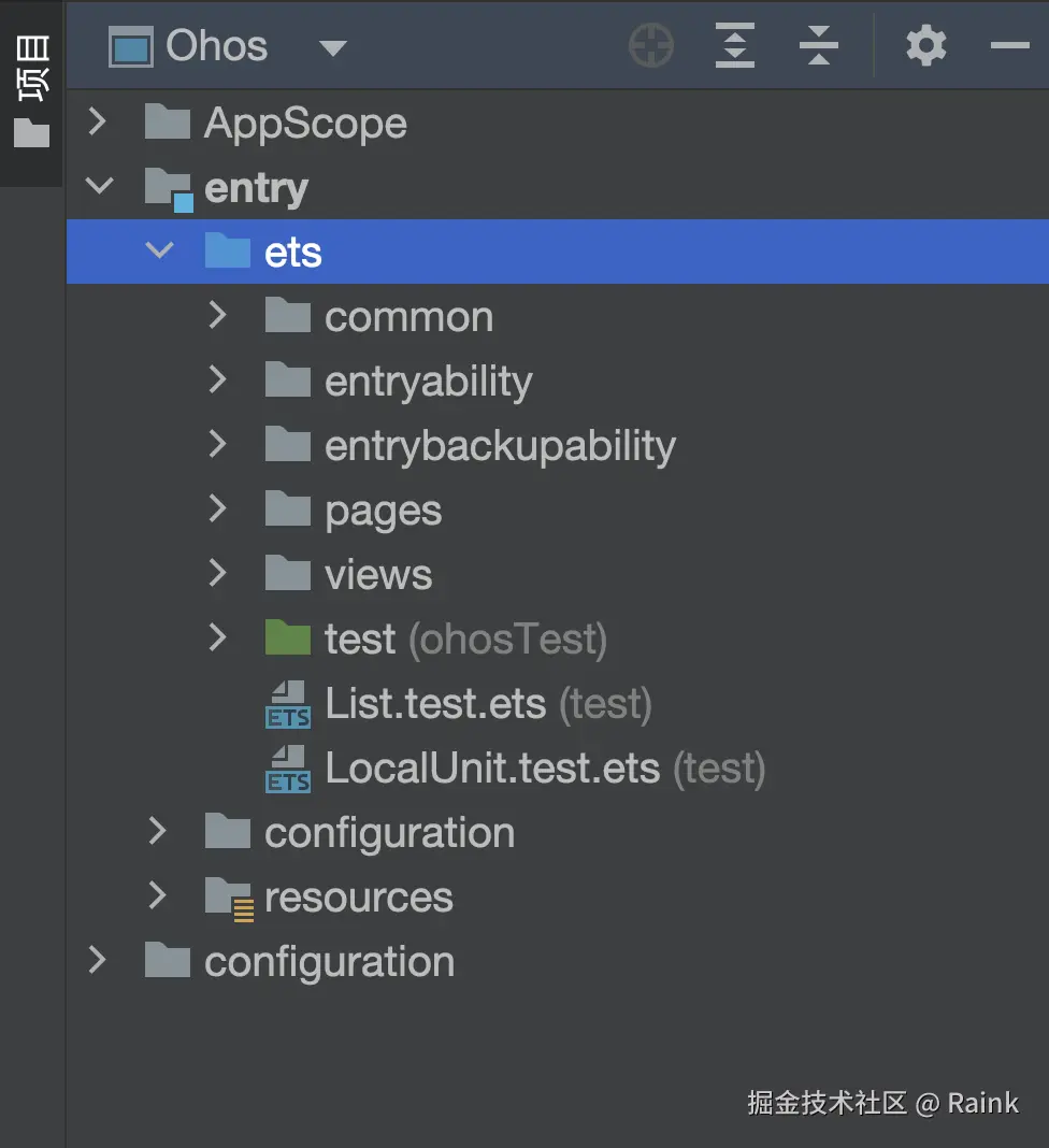 DevEco Studio工程目录结构提供工程视图和Ohos视图。工程视图(Project)展示工程中实际的文件结构,Ohos视图会隐藏一些编码中不常用到的文件,并将常用到的文件进行重组展示,方便开发者查询或定位所需编辑的模块或文件。