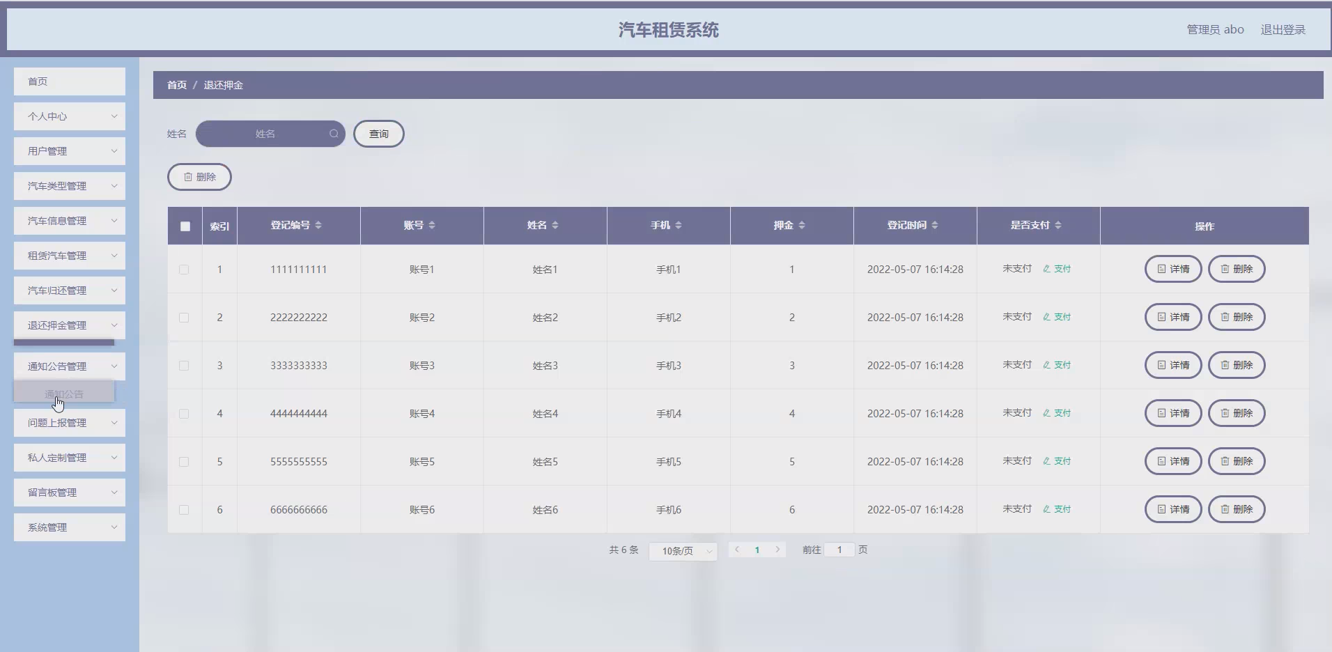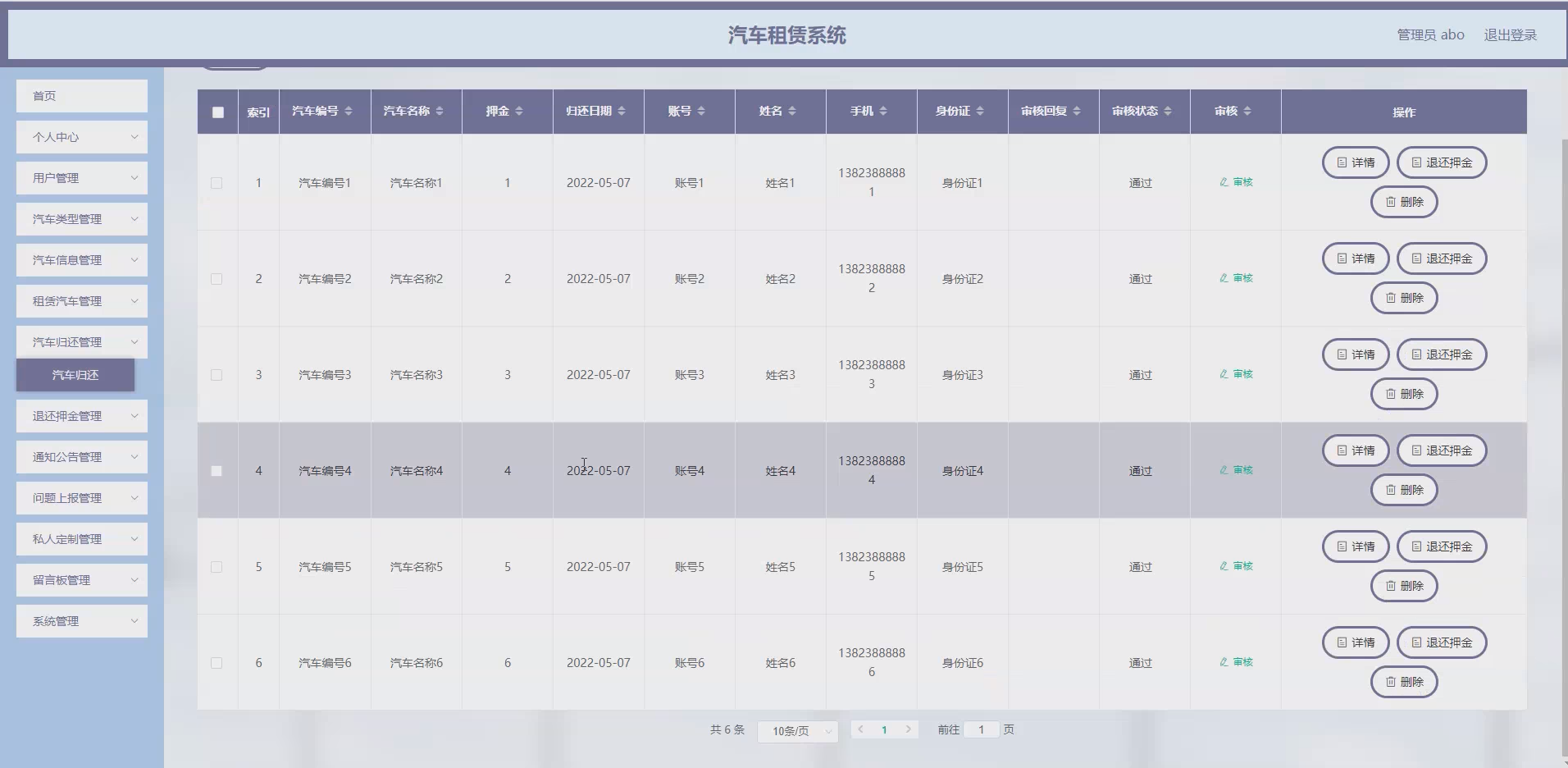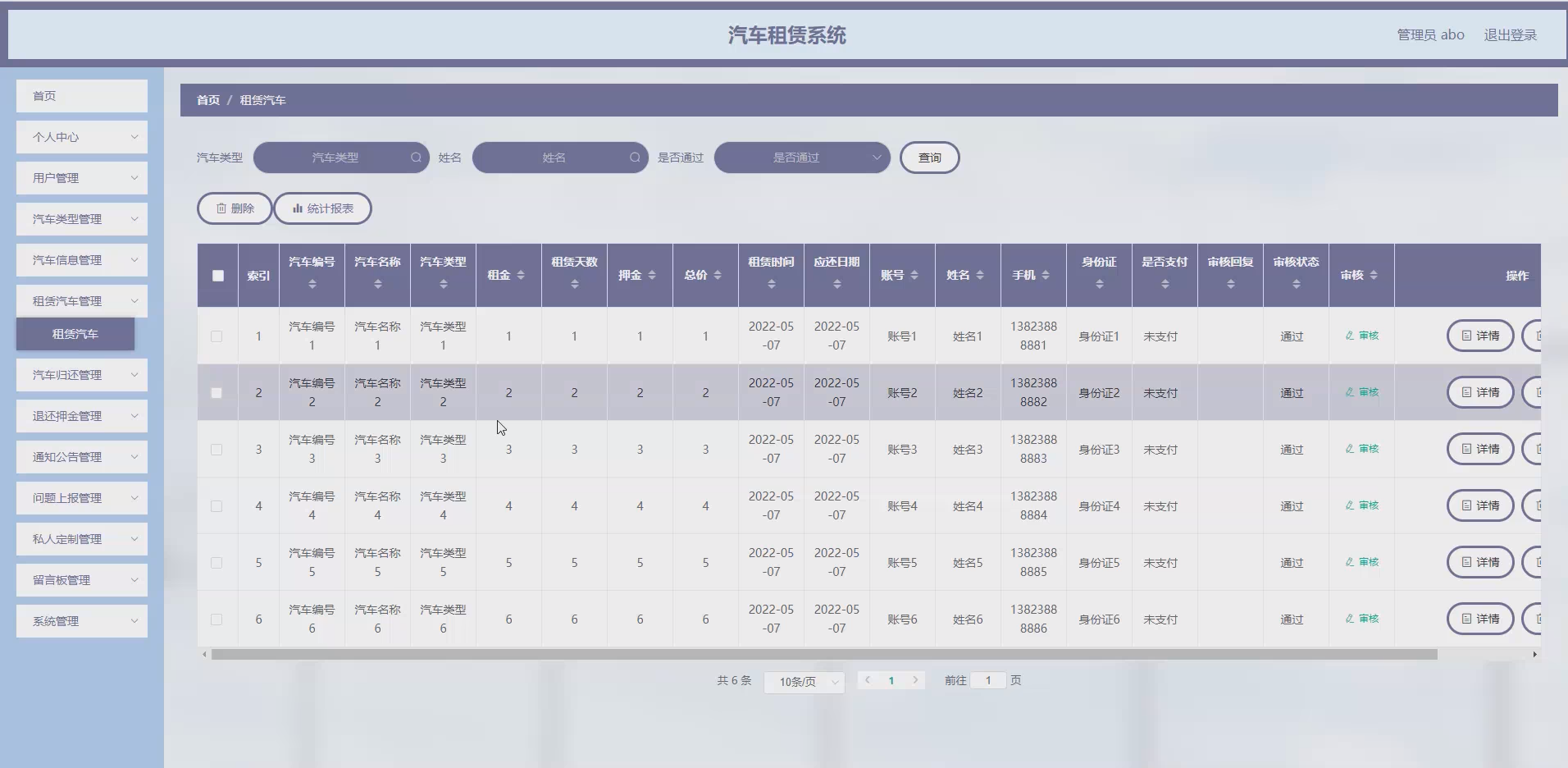 对于用户而言,系统提供了便捷的在线服务平台,用户可通过系统快速查询汽车类型、汽车信息,在线完成租赁汽车、问题上报、私人定制等操作,无需往返线下门店,极大地节省了时间成本。同时,系统实现了租赁流程的透明化,用户可实时了解订单状态、退还押金进度等信息,提升了用户的租赁体验和满意度。