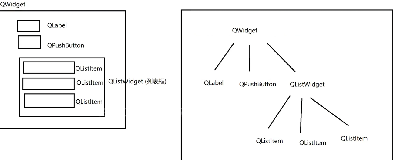QWidget(控件)有许多子类QPushButton.QlineEdit...