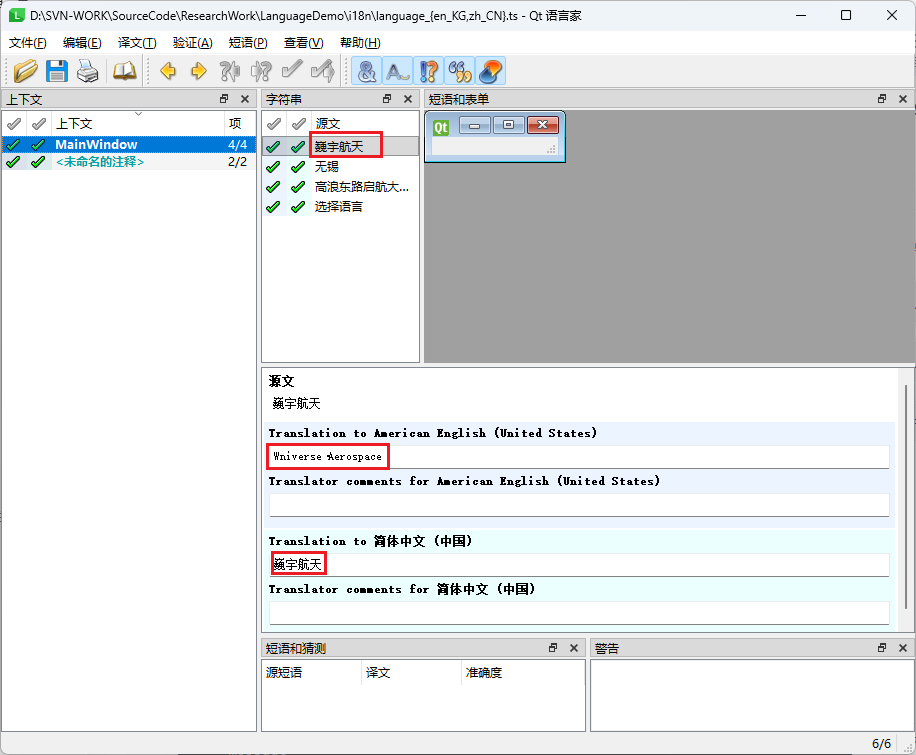 <?xml version="1.0" encoding="utf-8"?> <!DOCTYPE TS> <TS version="2.1" language="zh_CN"> <context> <name>MainWindow</name> <message> <location filename="../src/MainWindow.ui" line="50"/> <source>巍宇航天</source> <translation>巍宇航天</translation> </message> <message> <location filename="../src/MainWindow.ui" line="14"/> <source>无锡</source> <translation>无锡</translation> </message> <message> <location filename="../src/MainWindow.ui" line="14"/> <source>高浪东路启航大厦601</source> <translation>高浪东路启航大厦601</translation> </message> <message> <location filename="../src/MainWindow.ui" line="37"/> <source>选择语言</source> <translation>选择语言</translation> </message> </context> <context> <name></name> <message> <source>Chinese</source> <translation>中文</translation> </message> <message> <source>English</source> <translation>English</translation> </message> </context> </TS> -