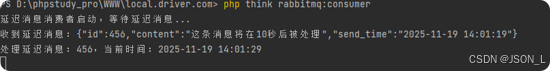 $output->writeln('延迟消息消费者启动,等待延迟消息...');