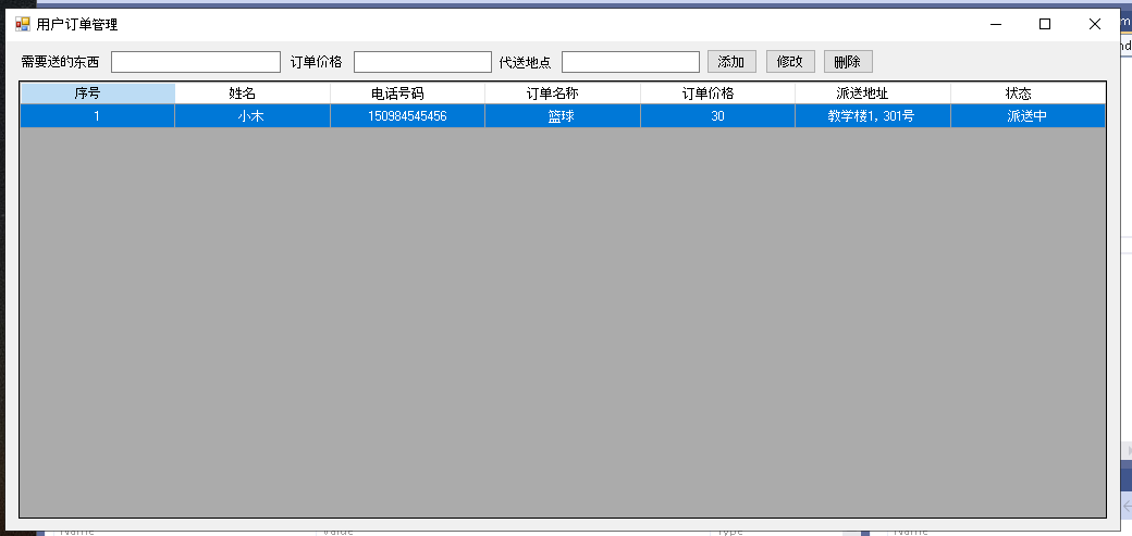 桌面开发,在线%物品代送,代接管理%系统,基于vs2022,c#,winform,sql server数据。