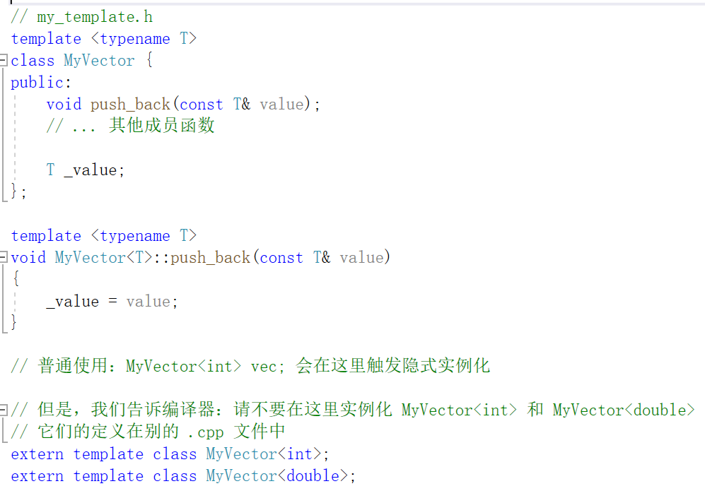 2.extern 模板(C++11)作用:显式模板实例化声明