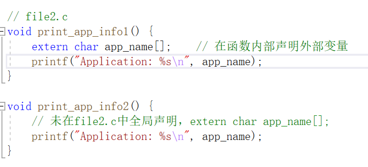 1.声明外部变量:告诉编译器"这个变量在别的文件中定义,我这里只是使用它"