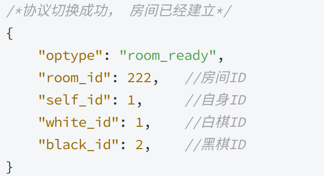 WebSocket握手成功后的回复:表示游戏房间已经进入成功。