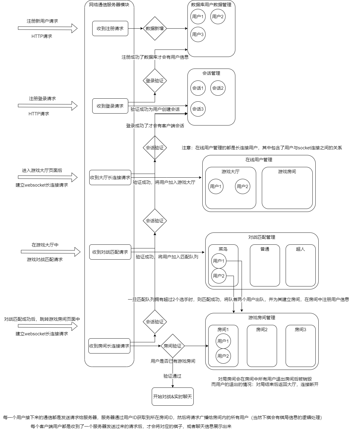 服务器模块,是对当前所实现的所有模块的一个整合,并进行服务器搭建的一个模块,最终封装实现出一个gobang_server的服务器模块类,向外提供搭建五子棋对战服务器的接口。通过实例化的对象可以简便的完成服务器的搭建。
