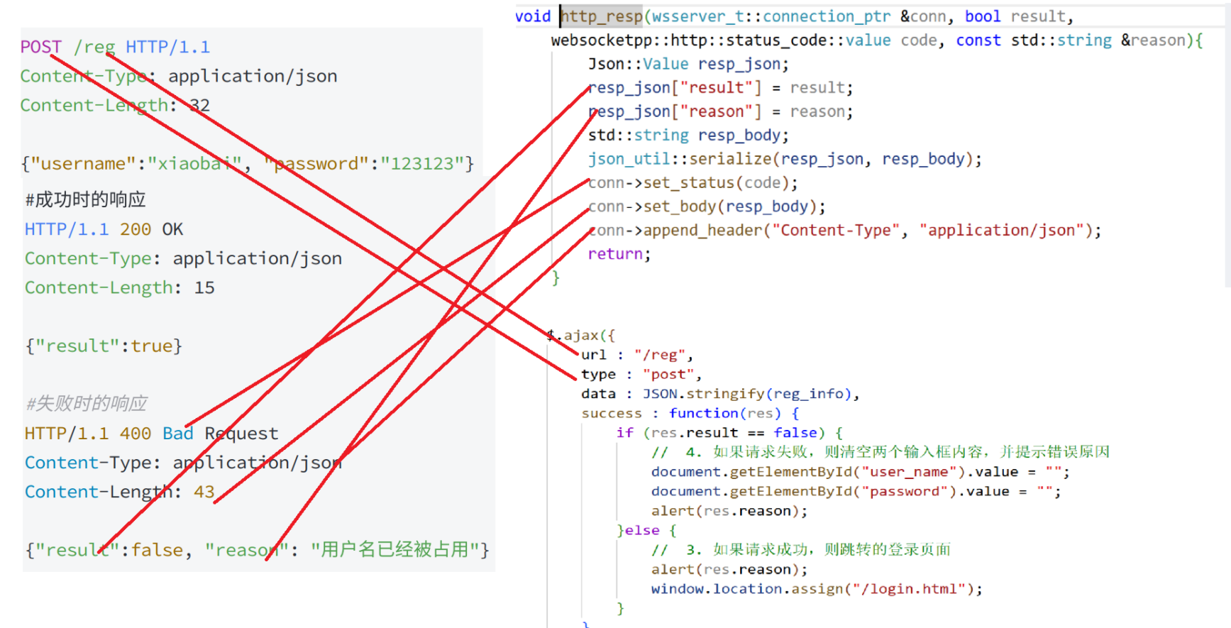 在写代码时,需要根据这些请求和响应的格式来写对应的reg,resp的json串的内容;