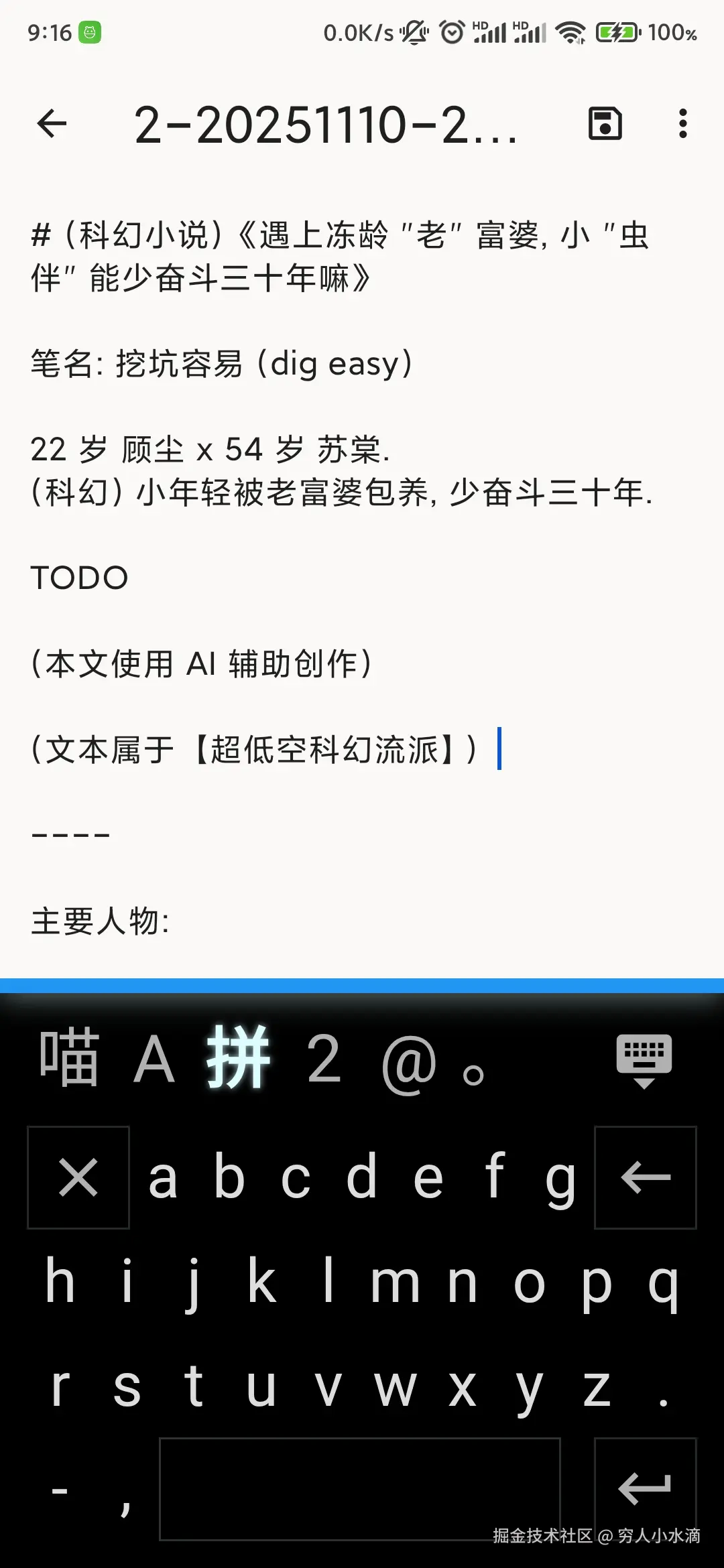 如图, 使用胖喵拼音 (和 AI) 在手机上写小说 ~